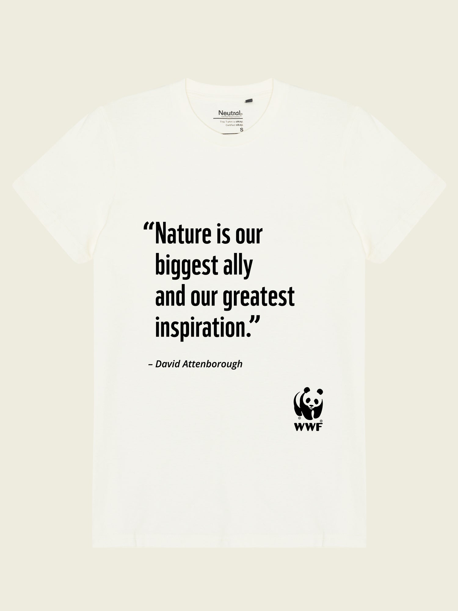 Vis din støtte til WWF med denne t-shirt med citatet af en af verdens vigtigste formidlere af naturhistorie.
